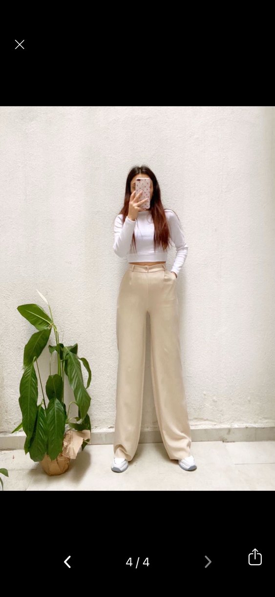 Bej renkli, rahat kesim ve ipeksi dokulu kadın pantolonu, minimalist ve zahmetsiz şıklık sunar. Günlük kullanıma uygun, trend sokak stili için ideal.
