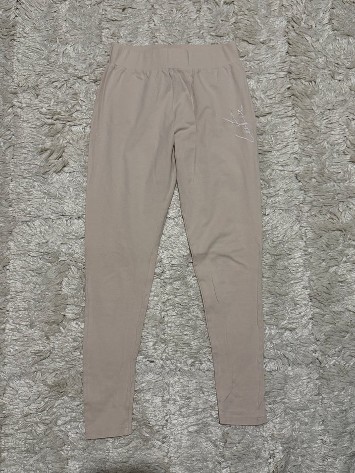 Yumuşak sentetik kumaştan, rahat kesim bej kadın tayt, gündelik kullanıma uygun ve zahmetsiz şıklık sunar. ♀️