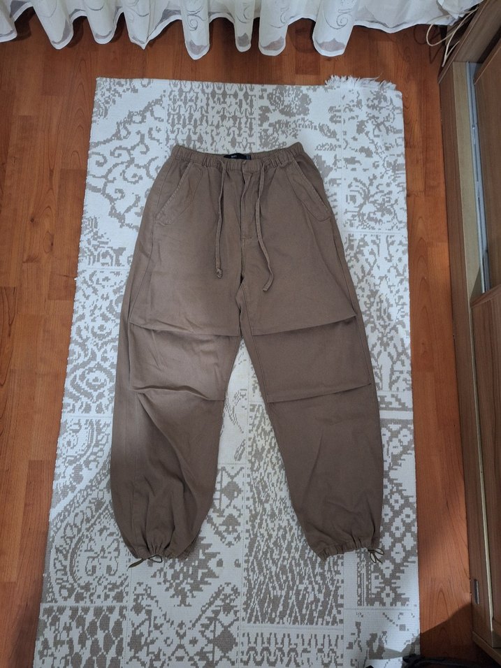 Bej keten kumaştan, rahat kesim erkek pantolon. Elastik paçalarıyla konfor sağlar. Günlük kullanıma uygun, trend sokak stili pantolon.