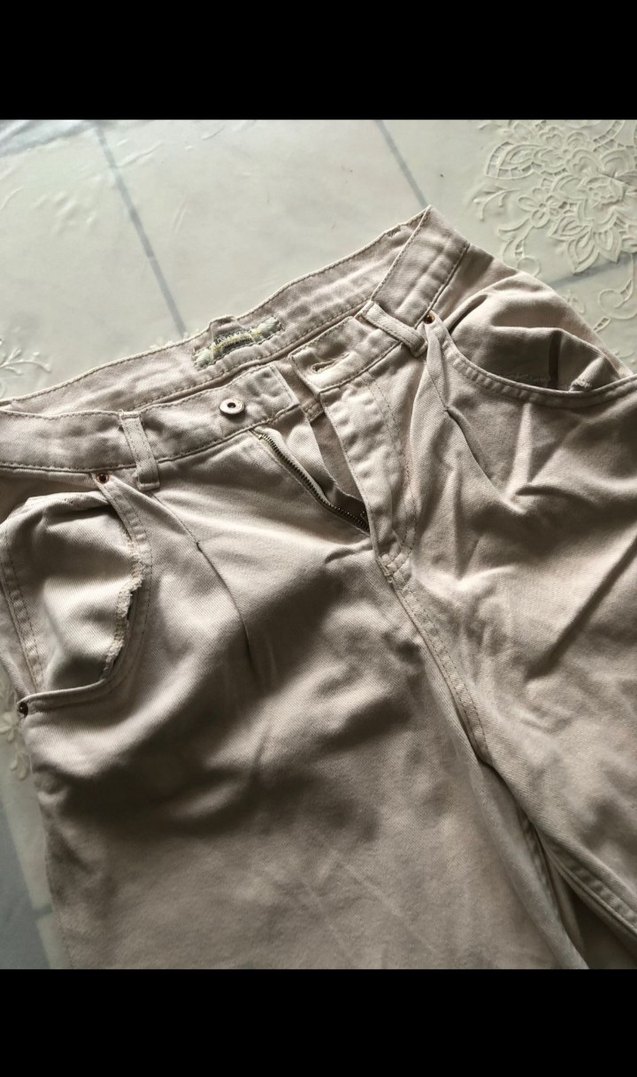 Bej renk, rahat kesim keten kumaştan yapılmış, midi boy, desen içermeyen kadın pantolon. Günlük kullanıma uygun, trend ve sade tarz sunar.