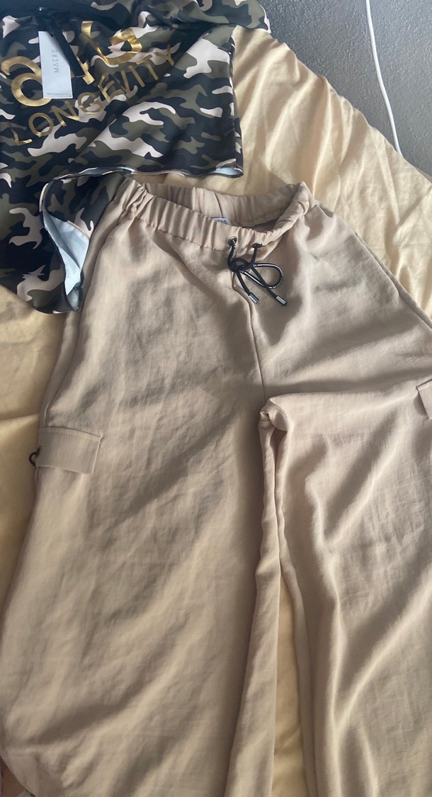 Bej renkli, rahat kesim keten pantolon. Midi boyda, bağcıklı bel detaylı, günlük sokak stiline uygun şık bir parça. Takımı ayrı olarak sayfamda yurt dışı ürünü