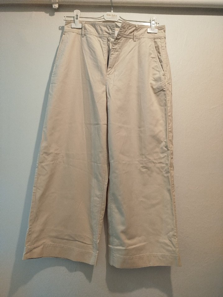 Bej renk, keten kumaştan, rahat kesim midi boy kadın pantolon. Desensiz, gündelik kullanıma uygun, trendi casual tarzda kolay şıklık sağlar.Hollandadan geldi sorunsuz