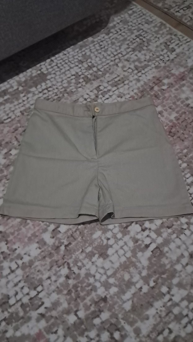 Bej renk, rahat kesim mini şort, yumuşak sentetik kumaştan üretilmiş, günlük sokak stili için uygun, zahmetsiz şıklık sunar.