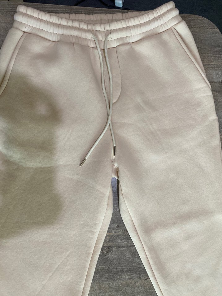Bej tonlarında, yumuşak , bağcıklı bel ve rahat kesim eşofman altı