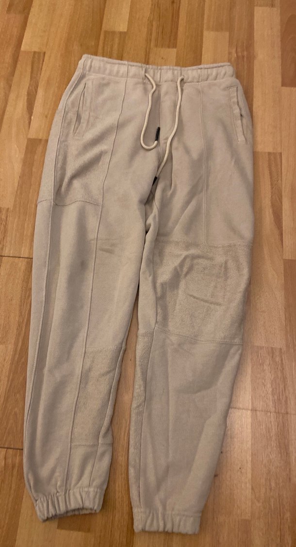Bej renkli, kumaştan, rahat kesim eşofman. Günlük kullanıma uygun, şık ve rahat tarz sunar.