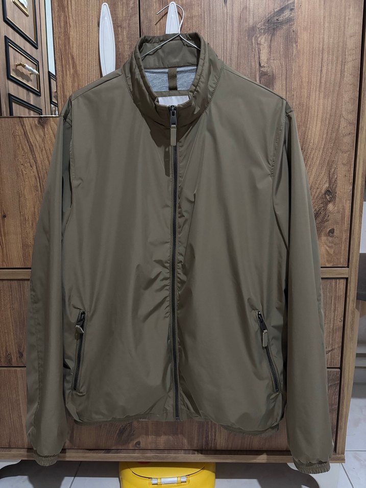 Bej renkte, regular fit erkek ceket. Notch yakalı, uzun kollu ve fermuarlı ön kapamalı. Düz, sentetik kumaştan, günlük sokak stili için uygun.
