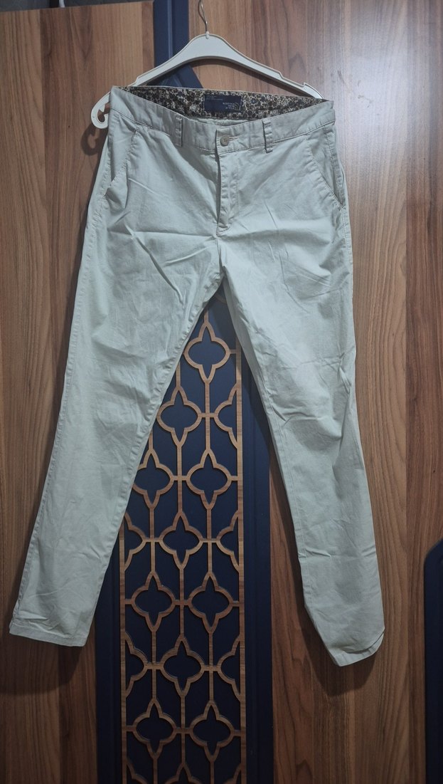 Bej renkli, regular fit ve kemerli erkek pantolonu, yumuşak sentetik kumaştan üretilmiştir. Günlük kullanım için uygun sokak stili sunar.