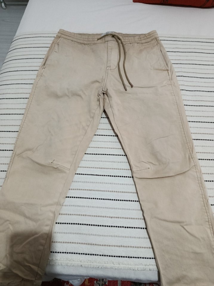 Bej renkli, regular fit ve midi boy erkek keten pantolon. Rahat ve şık, günlük kullanıma uygun casual tarzda. Bir kaç yerinde lekeleri mevcut.Lütfen inceleyerek alım yapınız.Bel 40 boy 92cm