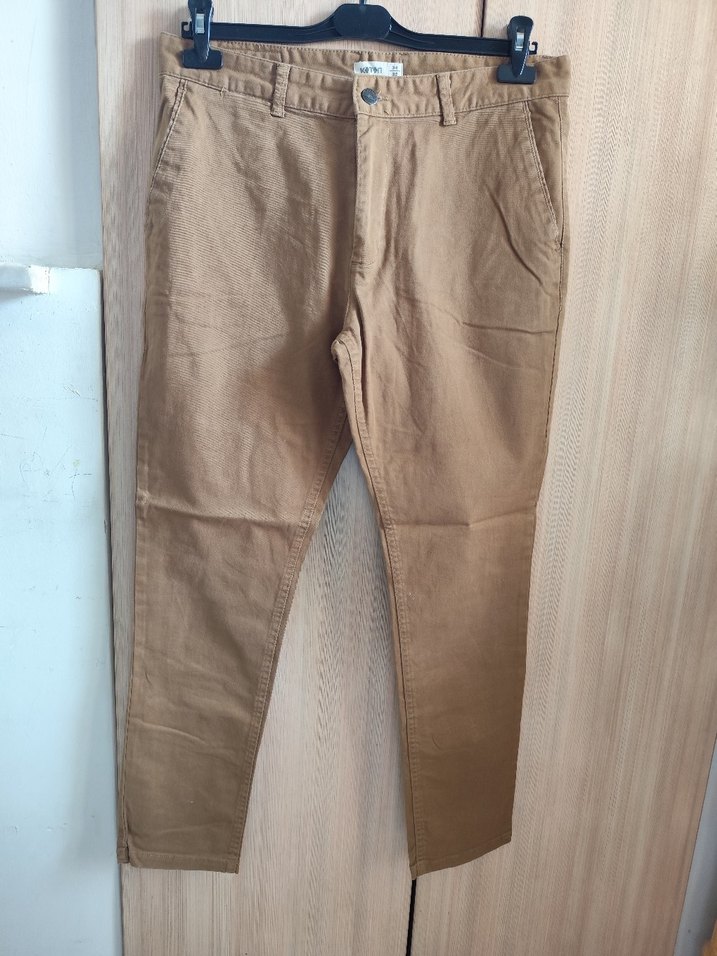 Bej renkli, regular fit kesim keten kumaştan erkek pantolon. Desensiz ve rahat sokak stiliyle günlük kullanıma uygun şık bir parça.