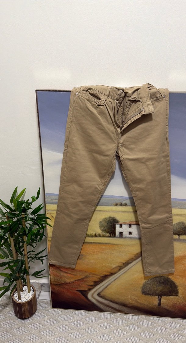 Bej renkte, sentetik kumaştan üretilmiş, regular fit ve normal boy erkek pantolon. Tokalı detaya sahip, desensiz ve günlük kullanıma uygun. ♂️