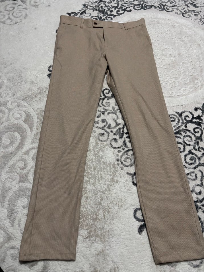 Bej renkte, sentetik kumaştan yapılmış, regular fit erkek pantolon. Günlük rahat kullanım için uygundur. Fiyatta pazarlık yapılır.