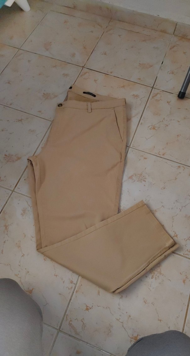 Bej renkte, regular fit kesime sahip erkek pantolon. Sentetik kumaştan üretilmiş, desensiz ve günlük kullanım için uygundur.