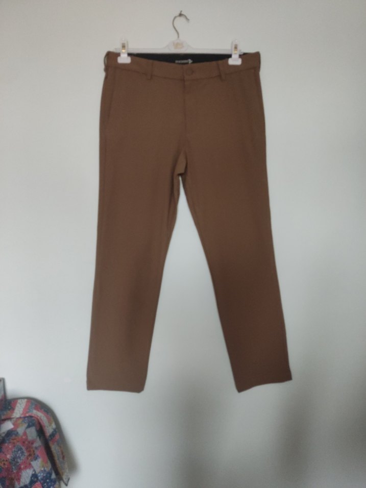 Bej renkli, regular fit ve normal boyda erkek pantolon. Pürüzsüz sentetik kumaştan üretilmiş, sade ve koyu tonuyla rahat ve şık bir görünüm sunar. Sağ ön tarafında fermuarlı gizli bir cebi vardır. Lütfen ölçüleri dikkate alınız. Boy 102 cm bel 44 cm paça genişliği 19,5 cm . Beden 32-33