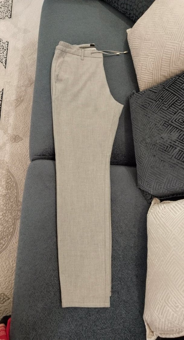 Bej renkte, kemerli ve sentetik kumaştan yapılmış regular fit erkek pantolon. Ofis ve günlük sokak stiline uygundur. pantolon oğluma ait 3 kez giyildi oğlum 13 yaşında ama boyu uzun hiçbir deformesi yoktur kısa geldiği için satışa çıkartıyorum