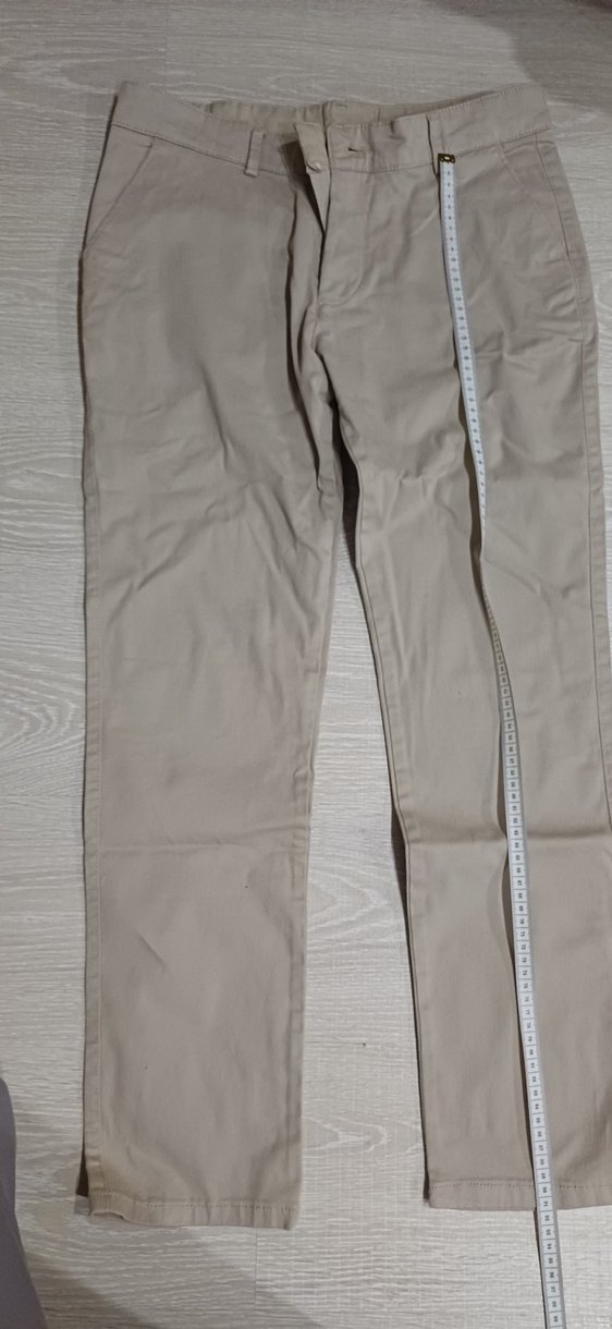 Sentetik kumaştan yapılmış, kemerli ve regular fit bej erkek pantolon. Sokak stili ve günlük dış mekan kullanımı için uygundur.