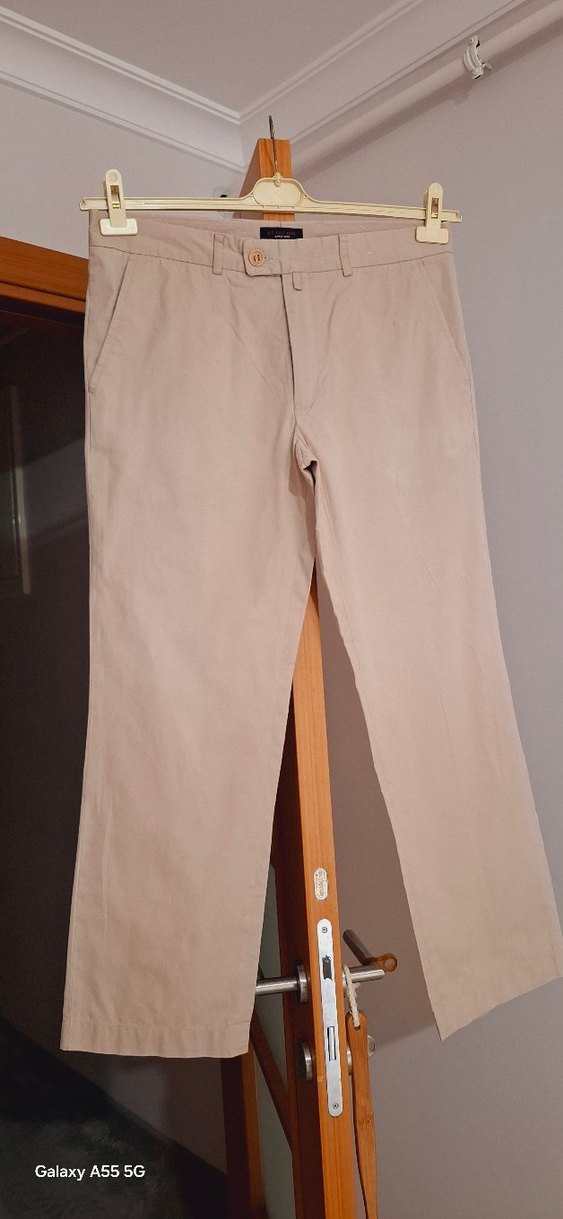 Nefes alabilen keten kumaştan yapılmış, bej renkli regular fit erkek pantolon. Klasik desensiz tasarımıyla ofis kullanımı için uygun, rahat ve şık bir seçenek.