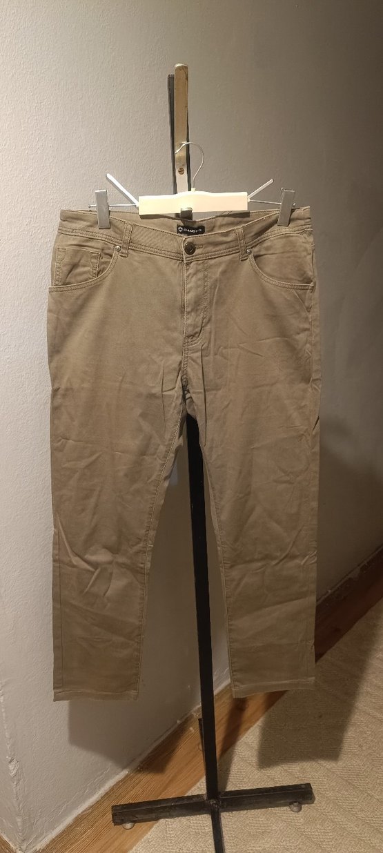 Yumuşak keten kumaştan, günlük kullanıma uygun bej regular fit erkek pantolon, rahat sokak stiliyle.