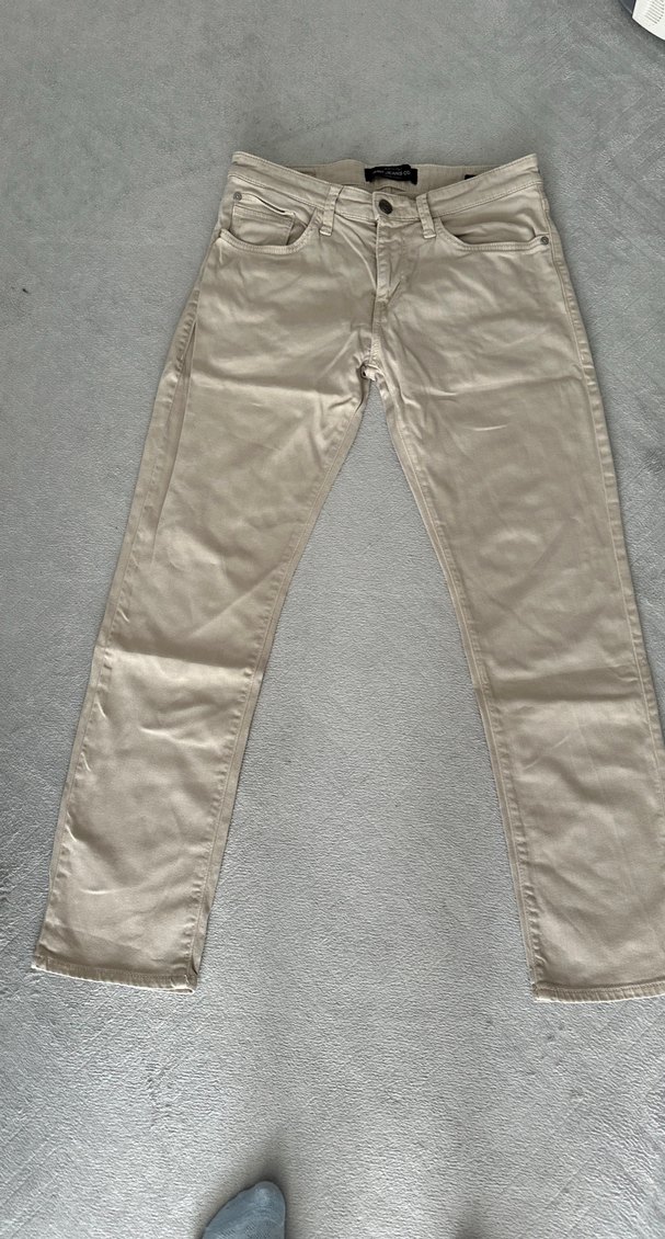 Bej renk, regular fit kesim keten erkek pantolon. Sokak stiline uygun, desen içermeyen rahat ve şık tasarım.