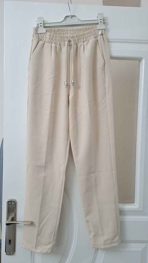 Bej renk, regular fit keten kumaştan, midi boy, desen içermeyen kadın pantolon. Rahat ve şık sokak stili için uygun, günlük kullanıma ideal.