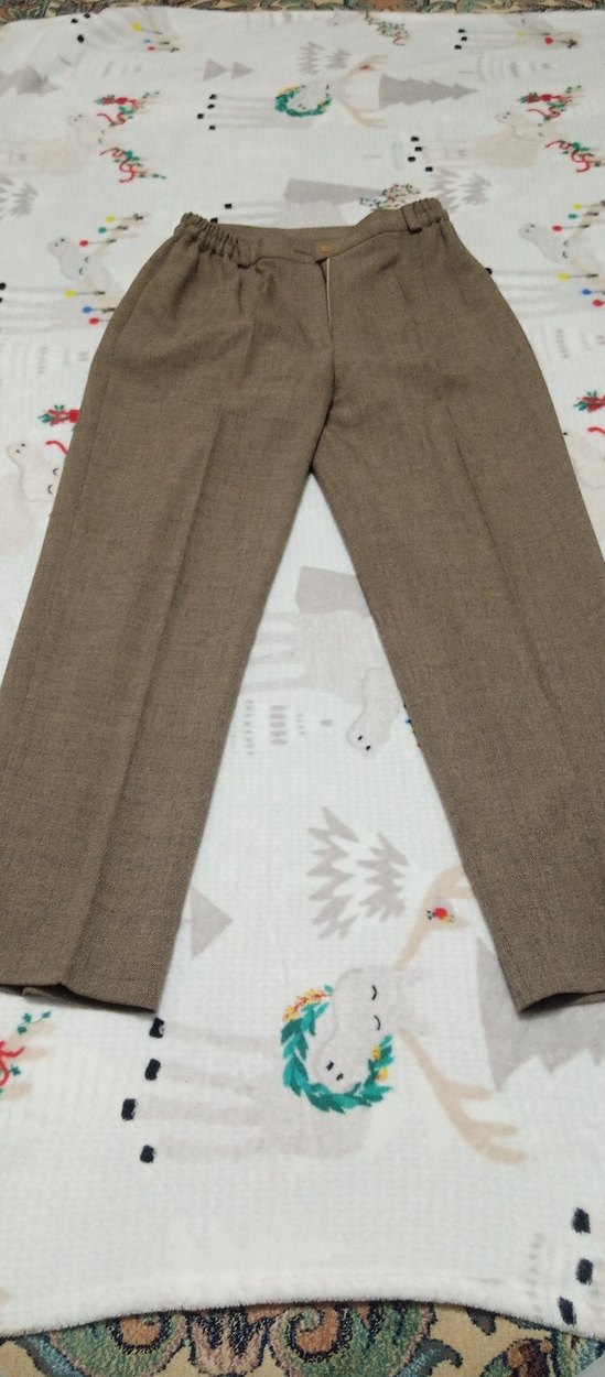 Bej keten kumaştan lastikli bel cepsiz, regular fit ve midi boy kadın pantolon. ofis kullanımı için uygundur, normcore ve trend günlük tarzı yansıtır. bel 34 cm boy 97 cm