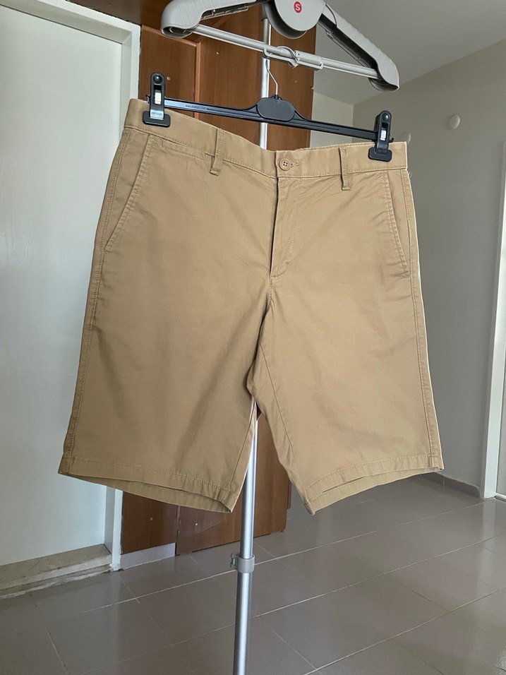 Bej renk, midi boy, regular fit erkek şort. Sorunsuz gap marka.