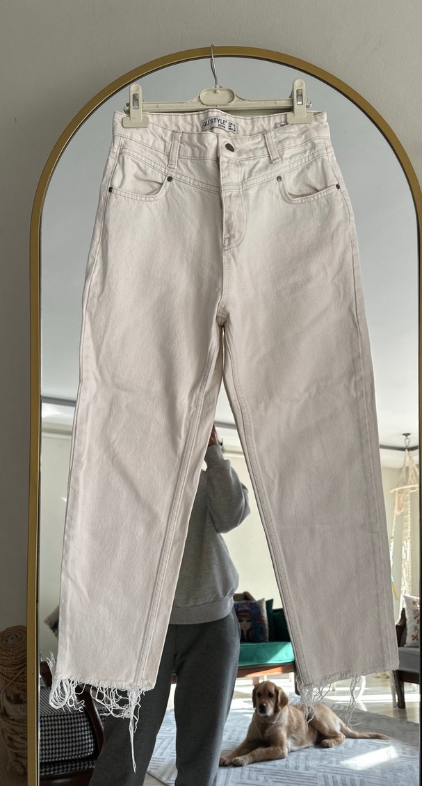 Bej renkli, regular fit midi uzunlukta kot pantolon. Denim kumaştan, desensiz ve pastel tonlarda. Günlük kullanıma uygun, rahat ve şık görünümlü.