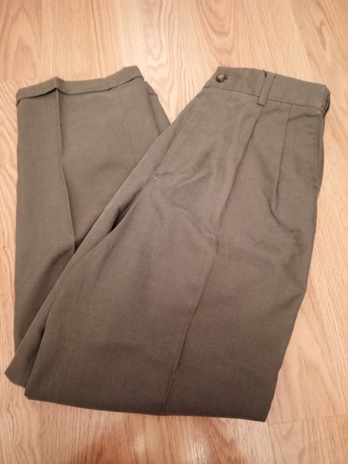 Bej renkte, regular fit, pileli ve desen içermeyen ofis pantolonu. İş ortamları için klasik ve normcore tarzda rahat bir seçim.