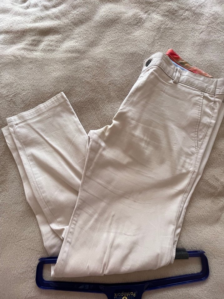 Yumuşak pamuktan yapılmış, kemerli ve günlük rahat kullanıma uygun bej renk regular fit erkek pantolon.