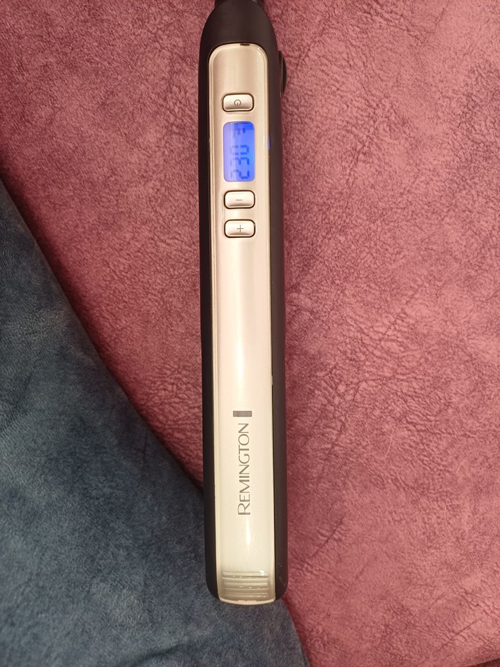 Remington saç düzleştirici, dijital ekran ve kolay kullanımlı düğmelerle hassas ısı ayarı sunar. Koyu ve bej renk tasarımı ile şık ve işlevseldir. ♀️