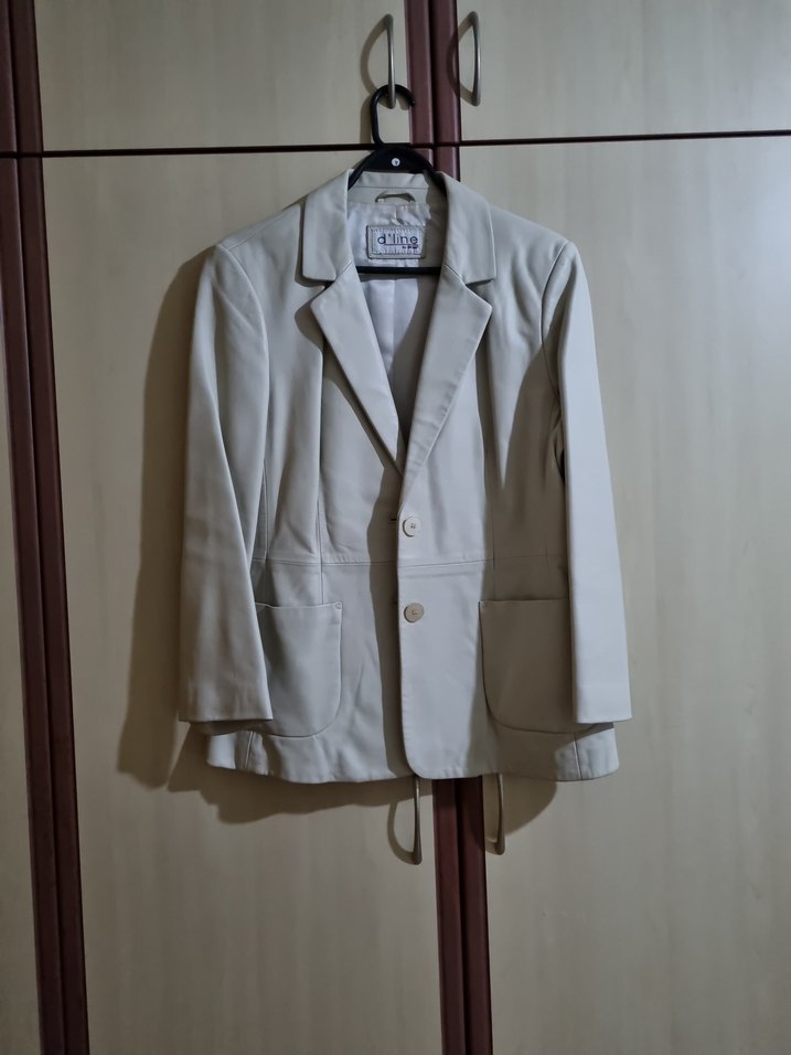 Bej deri yapılmış, düğmeli kadın blazer ceket. Normal kesim, uzun kollu ve normal midi uzunluğundadır. Desensiz, klasik ve ofis stiline uygundur. DESA DERİ MARKALI XL BEDEN ÖLÇÜLER FOTOĞRAFLARDA VERİLMİŞTİR