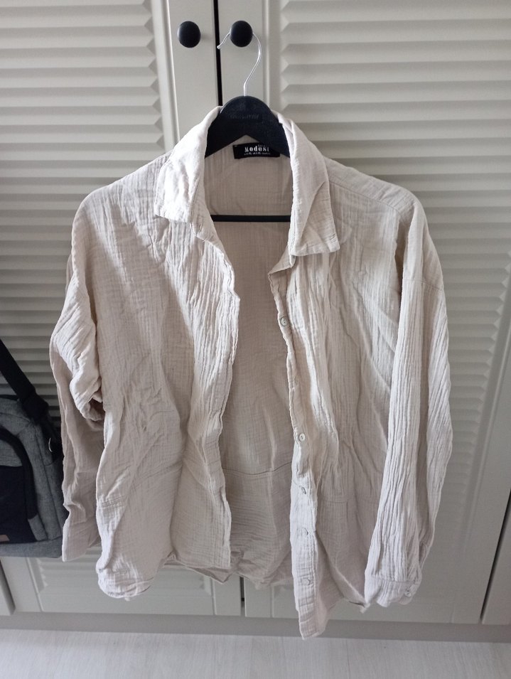 Bej Rengi Keten Kumaş Günlük Gömlek