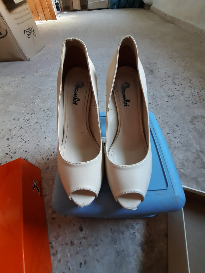 Bej Rengi Önü Açık Platform Topuk Ayakkabı