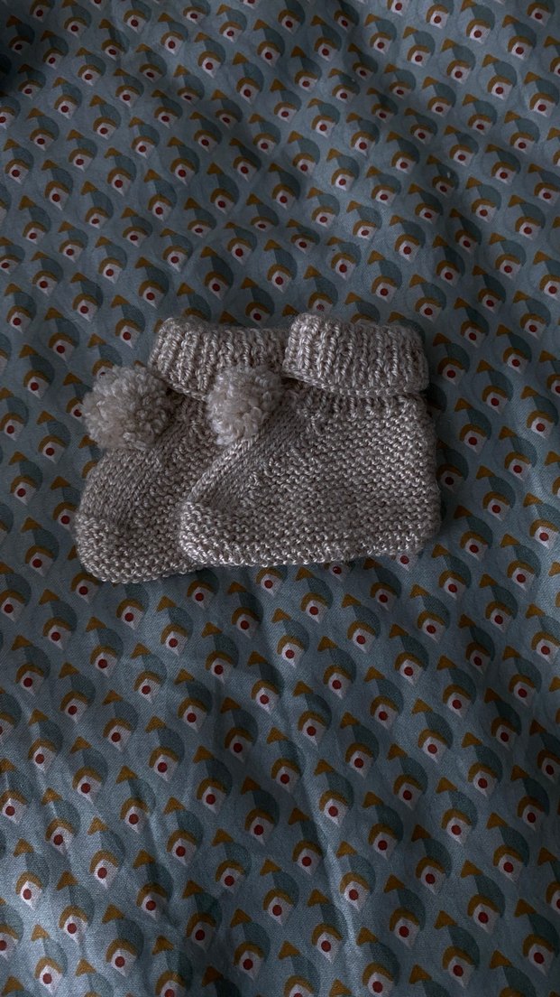 Gri renkli, örgü kumaştan yapılmış kız bebek botları, bohem tarzda ve ponpon detaylıdır. Küçük ayaklar için rahat bir kullanım sunar.