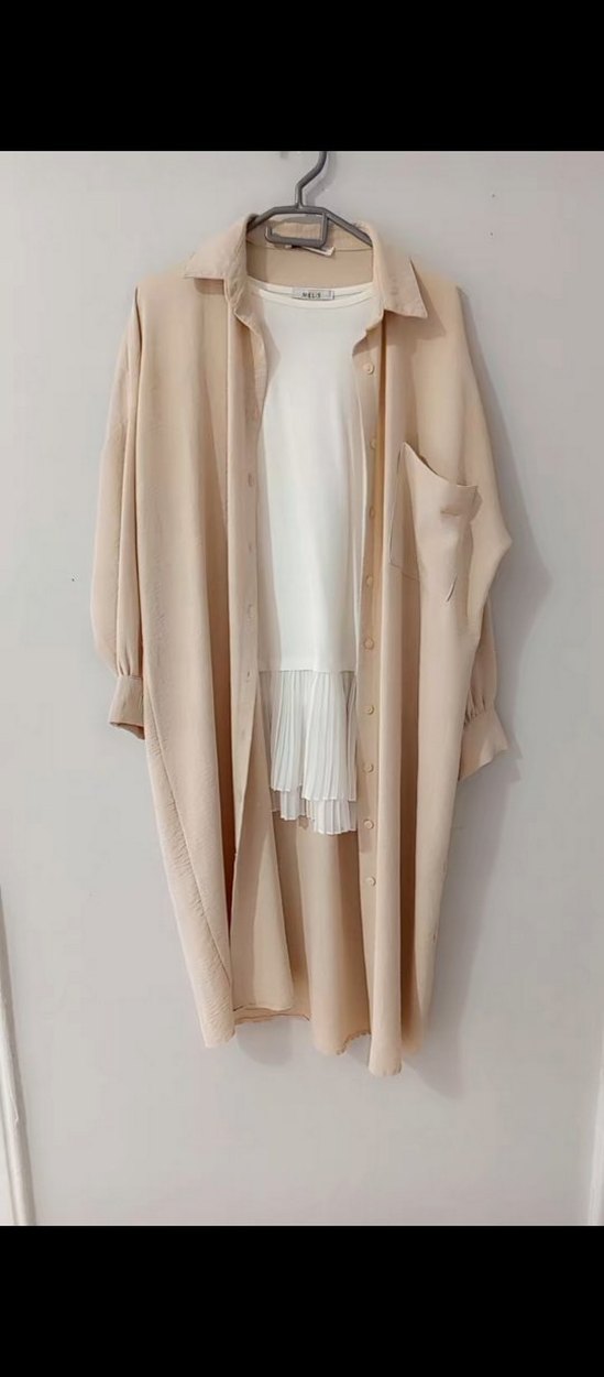 bej rengi ve beyaz renk uzun gömlek ve içlik