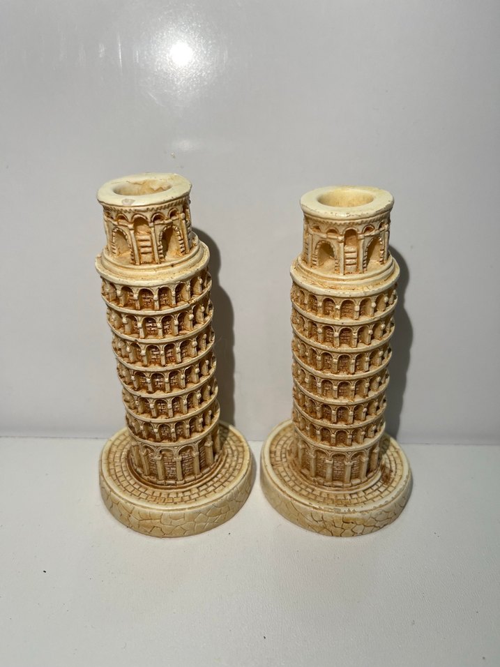 Pisa kulesi Bej renkte, detaylı kemerler ve dokulu tabanlı eğik kule figürlerinden oluşan iki adet biblo seti. Dekorasyon için uygundur. ️
