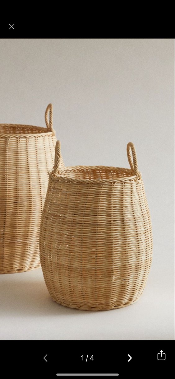 Bej renkli, kulplu dayanıklı hasır sepet, eşyaları düzenlemek ve saklamak için uygundur.