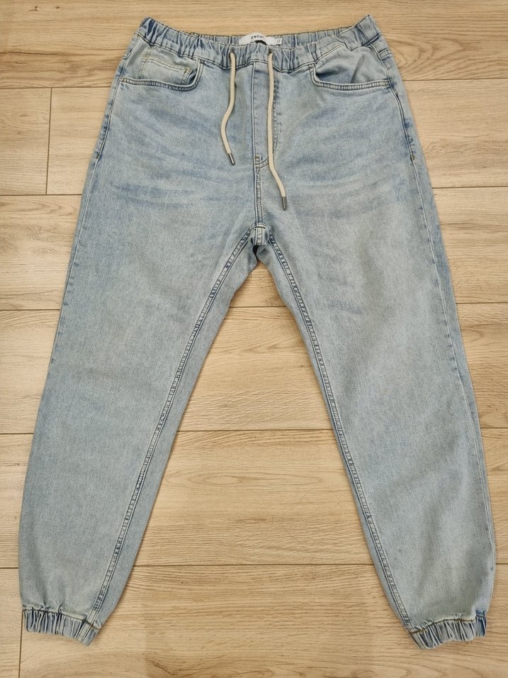 42 beden açık mavi renk kadınlar için bol kesim denim jogger pantolon, elastik bel ve bilek kısmı ile rahat bir sokak tarzı sunar. Günlük kullanım için uygundur.