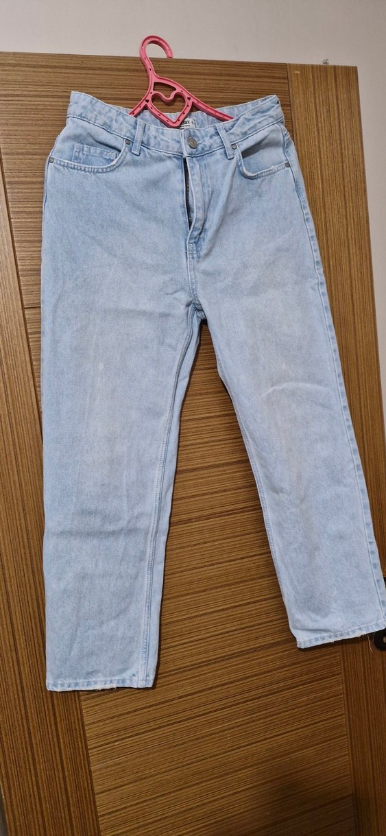 Bej renkli, düzenli kesim ve midi boy kadın denim pantolon, günlük kullanıma uygun rahat sokak stili sunar.