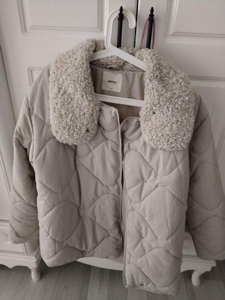 koton marka etiketi kesiktir etiketlidir hiç kullanılmadi deformesi yoktur 5.500 TL aldım ugguna vericem su itici özelliği vardır çok kaliteli güzel bir mont yakası çok güzel 40 bedendir
