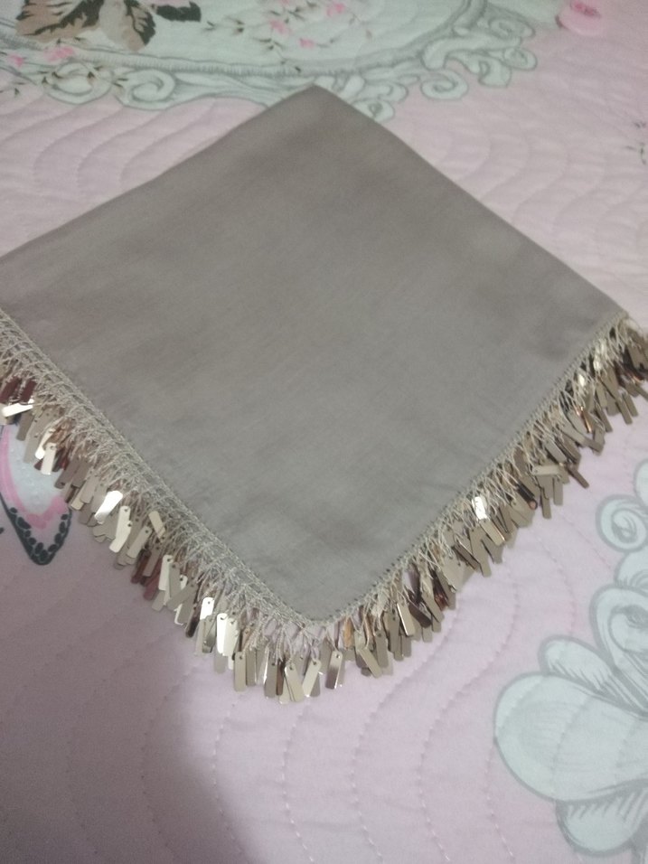 Bej renk pullu oyalı yazma Çeyizlik hediyelik