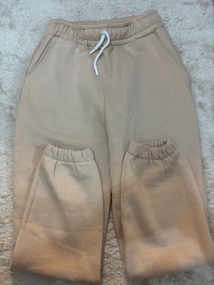 Bej renkli, rahat kesim ve normal boyda kadın eşofman altı. Yumuşak ve sıcak kumaştan üretilmiştir. Elastik bel ve yan ceplere sahiptir. Günlük rahat kullanım için uygundur. Hiç kullanılmamıştır defosuz