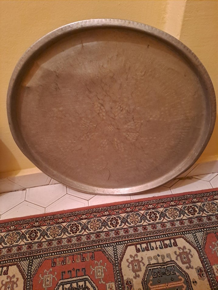 Sofralarınıza sıcaklık katacak koyu bej renkte, büyük yuvarlak ve dokulu yüzeyli tepsi. ️