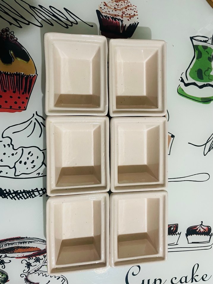 Bej renkli, dikdörtgen şekilli 6 adet saklama kabı seti, çeşitli yiyecekleri saklamak için uygun.