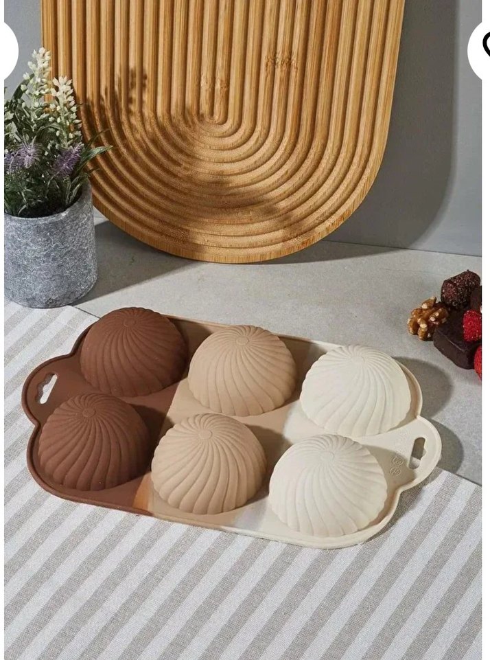 Kabartmalı 6 bölmeli, açık bej renkli kek kalıbı, tatlılar için uygun.