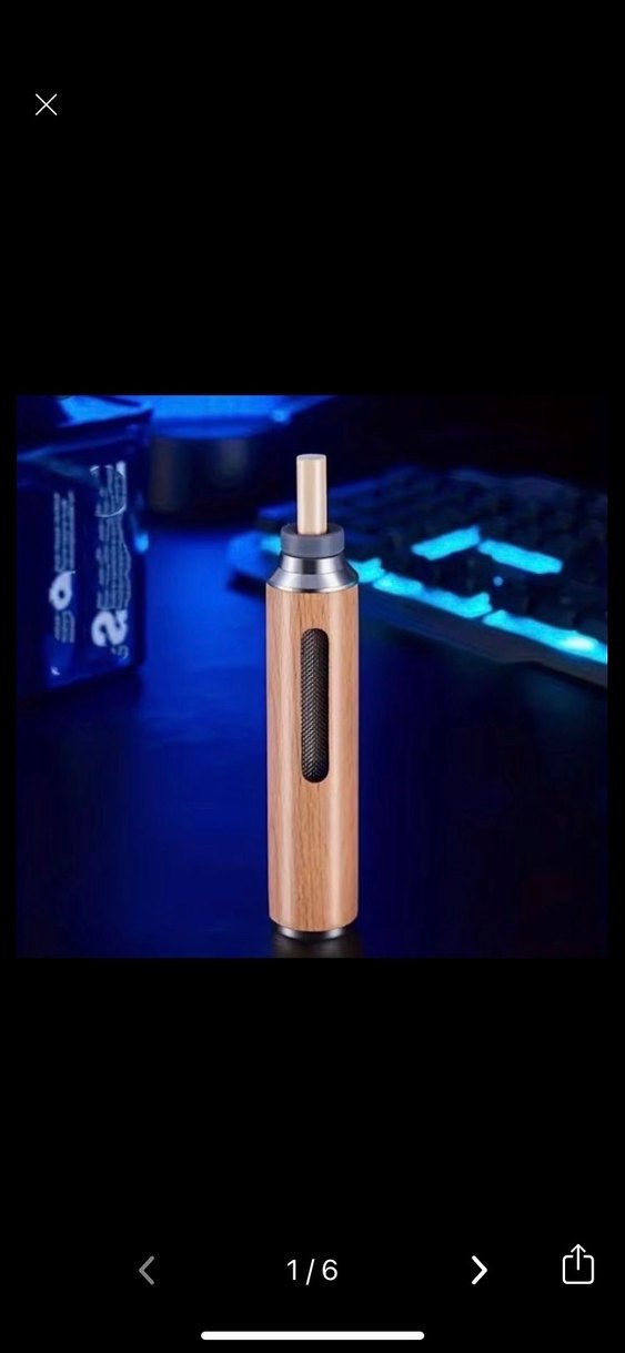 Bej renkli, ahşap görünümlü ve şık silindirik forma sahip taşınabilir sigara küllüğü