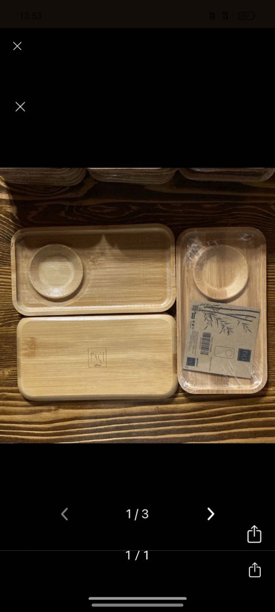 Bej renkte, ahşap tabak seti, yuvarlak bölmeli, doğal ve şık bir sunum sağlar. ️