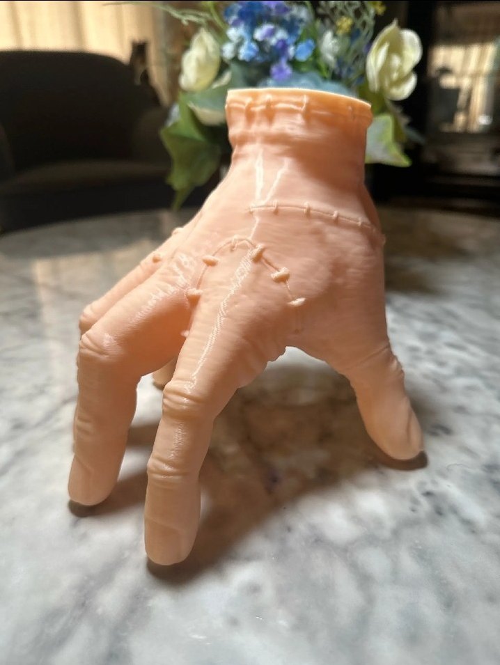 Bej renkte, dikiş detaylı aksiyon figürü el modeli, koleksiyon için özel bir parça. ️
