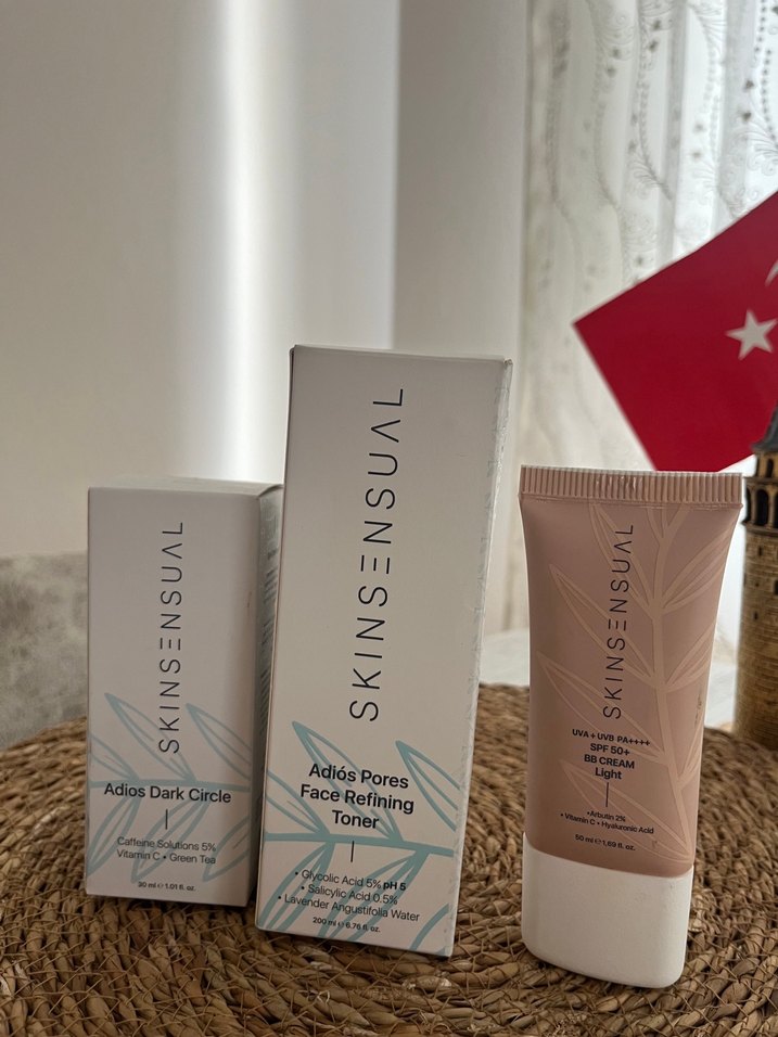 Bej renkli, SPF 50+ korumalı, yüz için hafif bitişli BB krem. Gözenekleri inceltmeye ve koyu halkaları azaltmaya yardımcı toner etkisi içerir. Göz çevresi serumu,Asitli serum hiç kullanılmadı paketler açılmadı.11.2027 son kullanmaları mevcut
