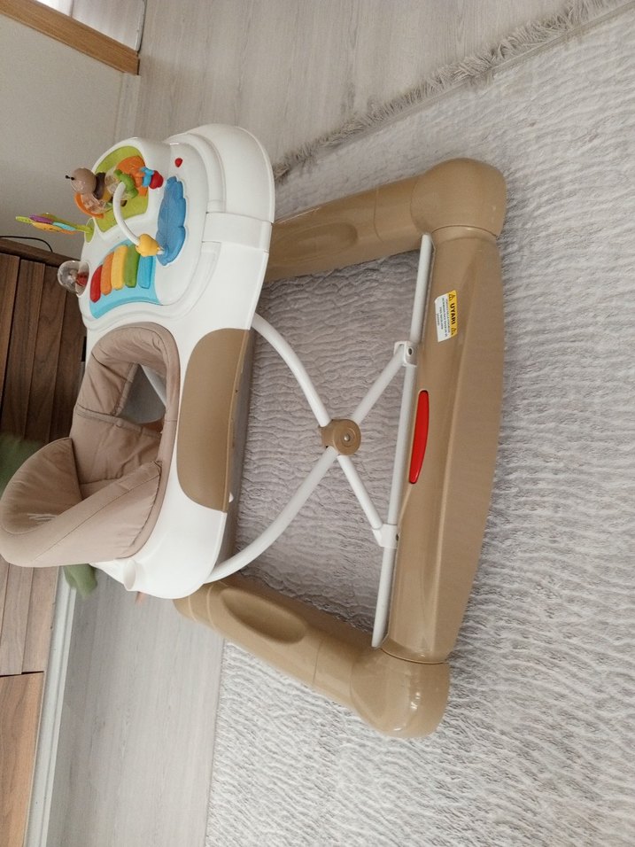 Bu bej renkli bebek yürüteci, yumuşak oturma yeri ve etkileşimli oyuncaklarla bebeğinizi yürümeye teşvik eder. Dayanıklı bir yapıya sahiptir.