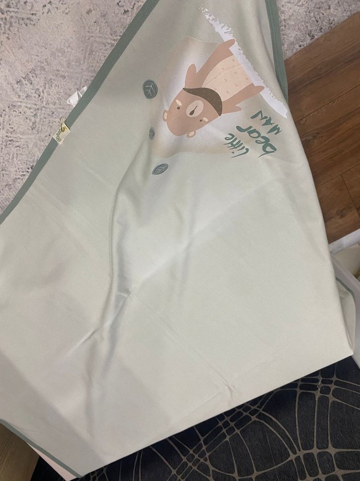 Pastel bej renkli, baskılı çocuk battaniyesi yumuşak sentetik kumaştan üretilmiştir, rahatlık ve sıcaklık sağlar.